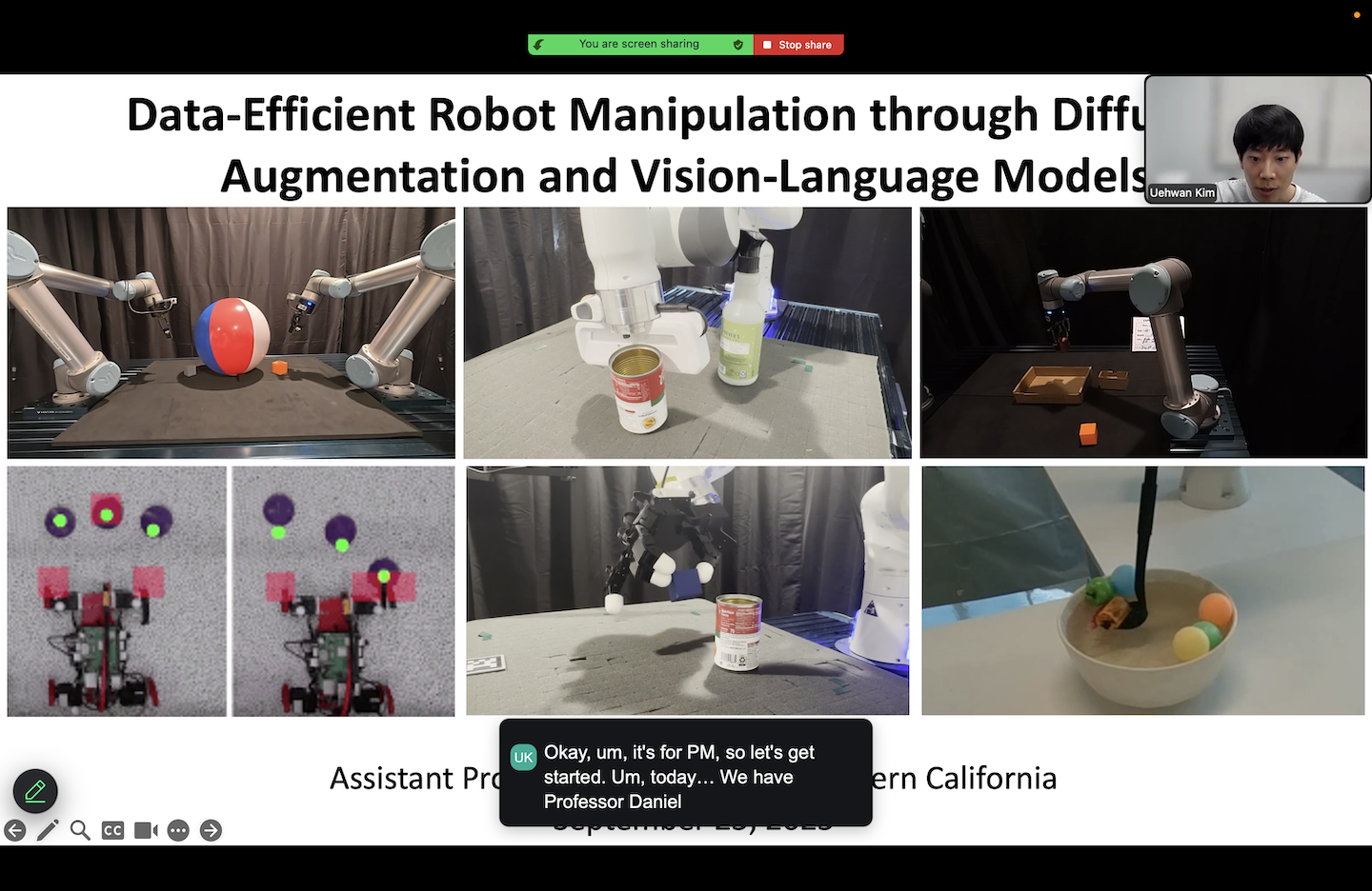 Daniel Seita is an Assistant Professor in the Computer Science department at the University of Southern California and the director of the Sensing, Learning, and Understanding for Robotic Manipulation (SLURM) Lab. His research interests are in computer vision, machine learning, and foundation models for robot manipulation, focusing on improving performance in visually and geometrically challenging settings. Daniel was previously a postdoc at Carnegie Mellon University's Robotics Institute and holds a PhD in computer science from the University of California, Berkeley. He received undergraduate degrees in math and computer science from Williams College. Daniel's research has been supported by a six-year Graduate Fellowship for STEM Diversity and by a two-year Berkeley Fellowship. He has the Honorable Mention for Best Paper award at UAI 2017, was an RSS 2022 Pioneer, and has presented work at premier robotics conferences such as ICRA, IROS, RSS, and CoRL.
